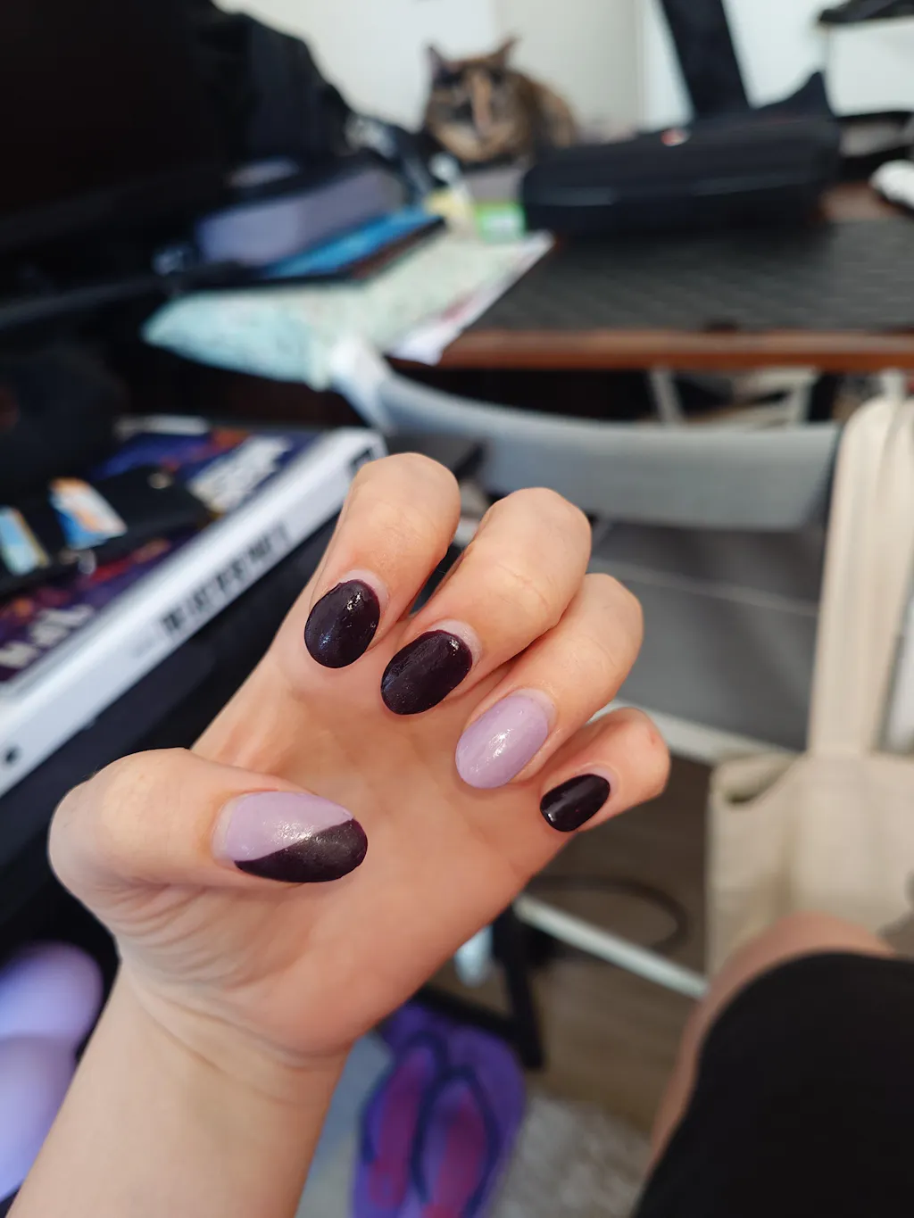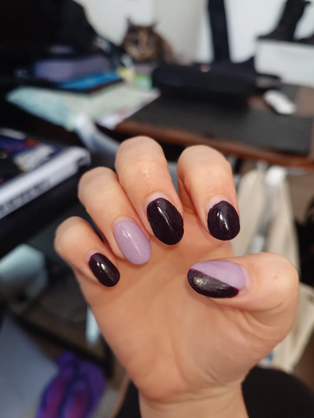 Very nice subtle color, not too purple. Finished off with nail stickers and nail art polish top coat.